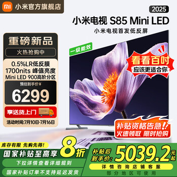 СÃ×£¨MI£©µçÊÓ S85 Mini LED 2025 85Ó¢´ç µÍ·´ÆÁ 900·ÖÇø1700nits288HZ ÅìÅÈOS L85MB-S Ò»¼¶ÄÜЧ ¹ú¼Ò²¹Ìù 85Ó¢´ç