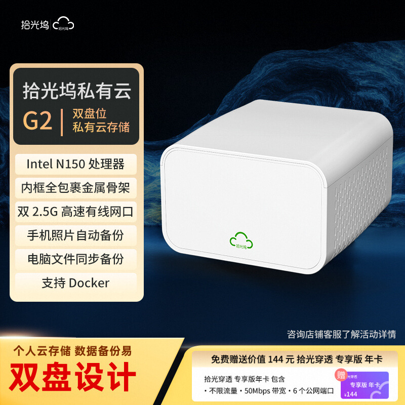 拾光坞G2标准版 双盘家用nas网络存储个人云存储家庭服务器相册备份 手机电脑扩容 标配无盘 8GB+32GB