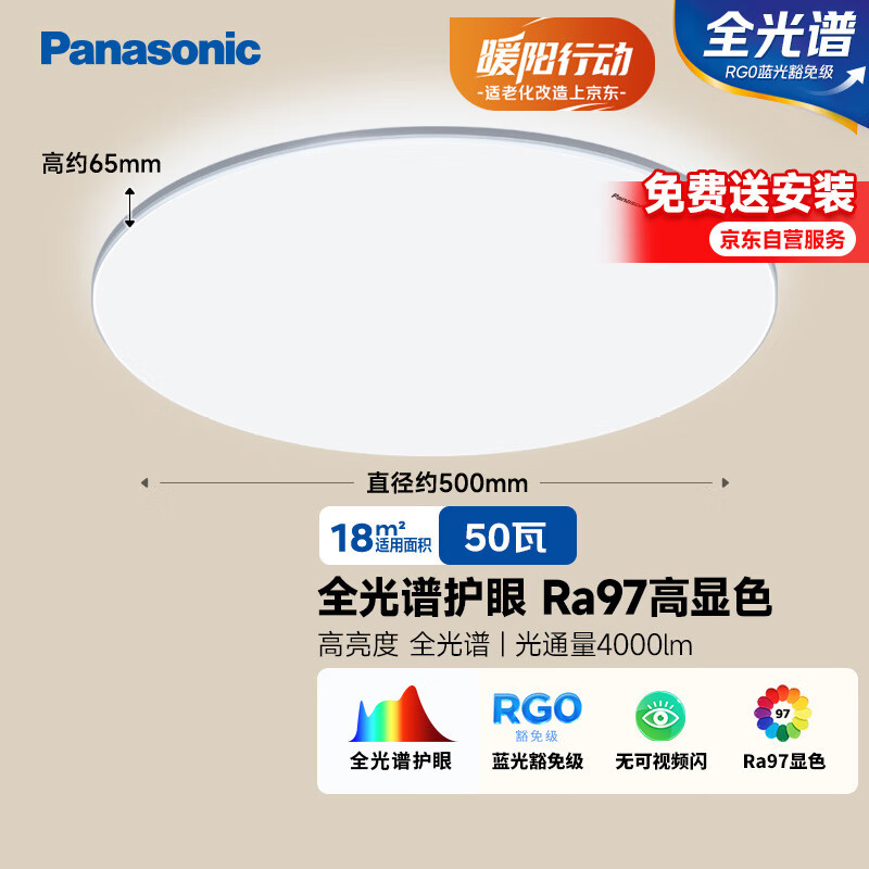 松下(Panasonic)吸顶灯卧室灯全光谱护眼银色简约款50瓦 HHXQ5160【包安装】