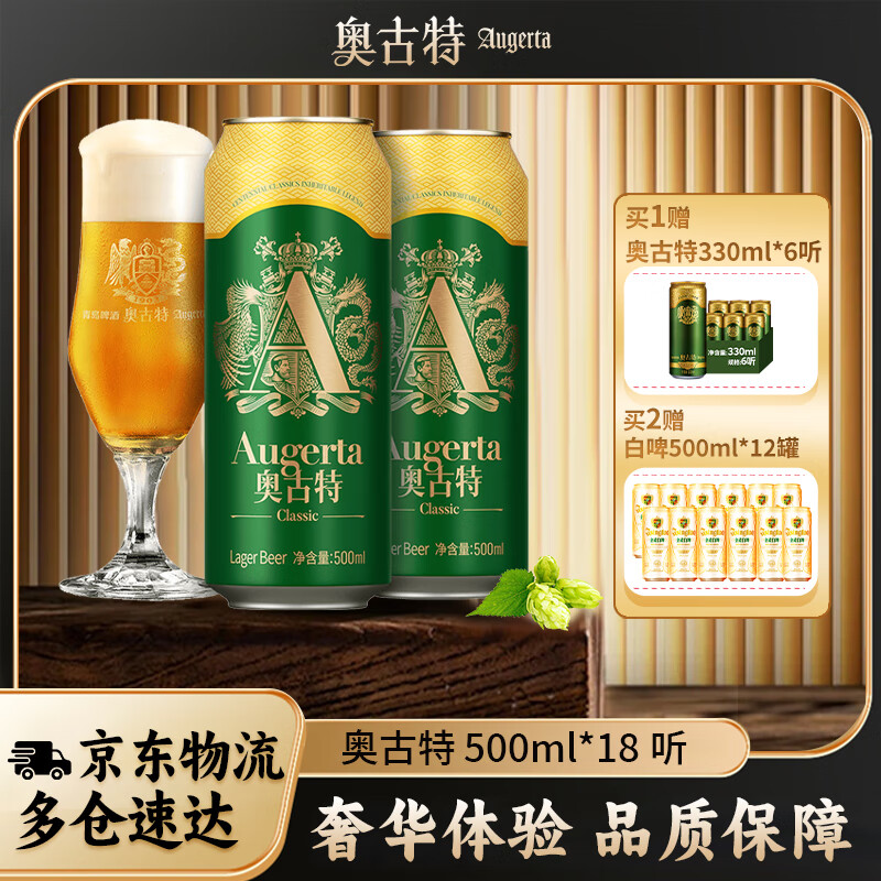 奥古特(Augerta)高端酿造 奥古特经典啤酒原麦汁浓度12°P 大罐整箱 500mL 18罐