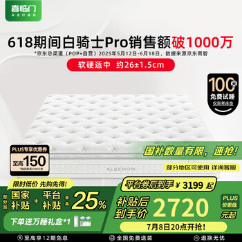 喜临门白骑士pro国家补贴席梦思独袋弹簧家用软硬适中透气芯材进口加厚 白骑士pro床垫【厚26cm】 1.8*2米