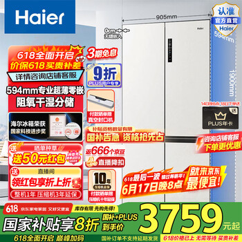 海尔(Haier)【小红花】海尔516L冰箱594mm超薄零嵌十字T型四开门冰箱EPP除菌阻氧干湿分储BCD-516WGHTDB9GPU1 BCD-516WGHTDB9GPU1