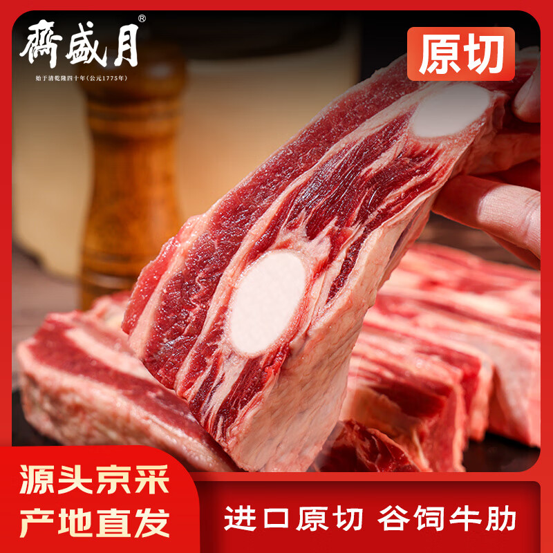 月盛斋进口原切牛肋排净重4斤 新鲜烧烤炖煮食材 源头直发包邮
