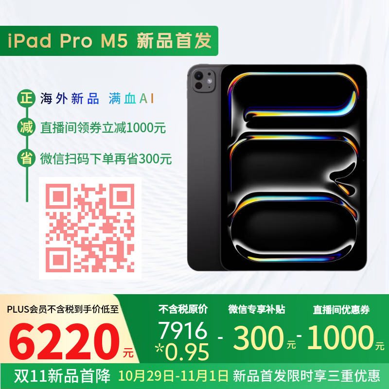 Apple/苹果 iPad Pro11英寸 M5芯片 2025年新款平板电脑 256G WLAN版 深空黑色 海外版