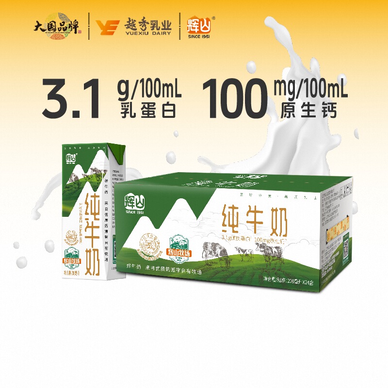 辉山纯牛奶200ml/250ml生牛乳经典盒装营养早餐奶官方旗舰店任选
