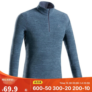 迪卡侬男式山地徒步摇粒绒保暖夹克MH100深藏青色 4100963 L