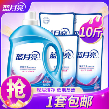 蓝月亮 洗衣液 机洗手洗 深层洁净 去污去渍 低泡易漂洗 薰衣草香 10斤囤货装 3kg*1瓶 +500g袋*4