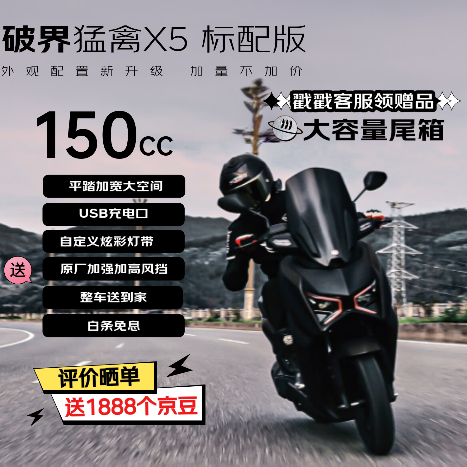 破界猛禽x5燃油踏板摩托车150新款省油实用外卖代步高颜值标准版哑黑