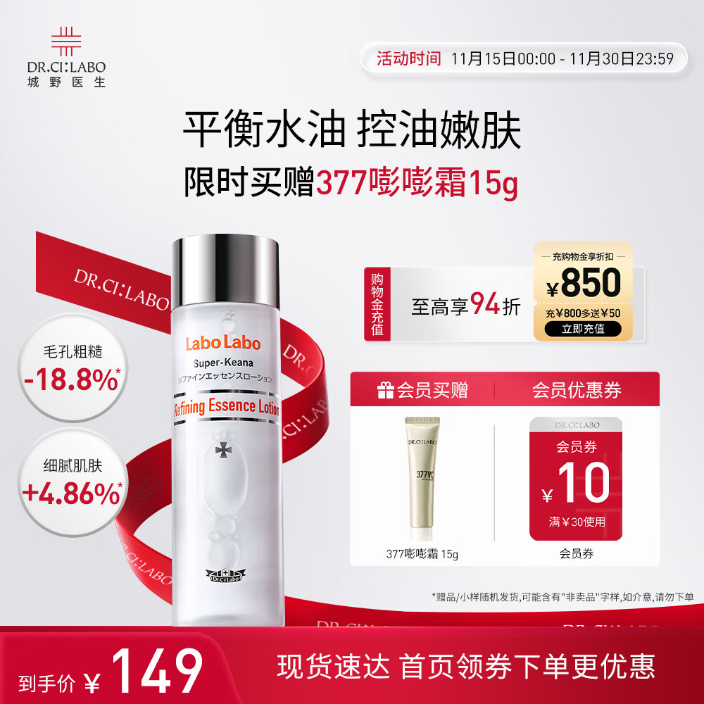 城野医生毛孔收敛水爽肤水果酸水爽肤水湿敷水粗大修复225机能水100ml