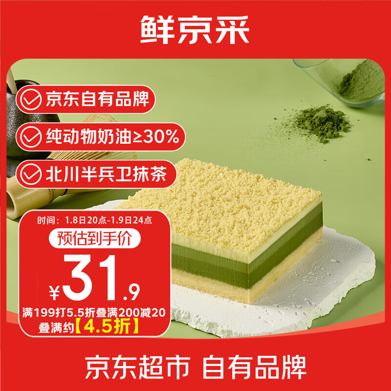 鲜京采【升级版】浓醇抹茶芝士蛋糕300g动物奶油减糖糕点送人中秋礼物