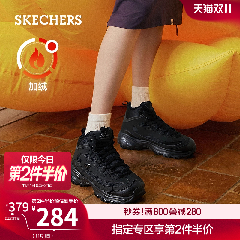 斯凯奇冬季女高帮鞋熊猫鞋加绒保暖老爹鞋厚底增高休闲运动鞋棉鞋