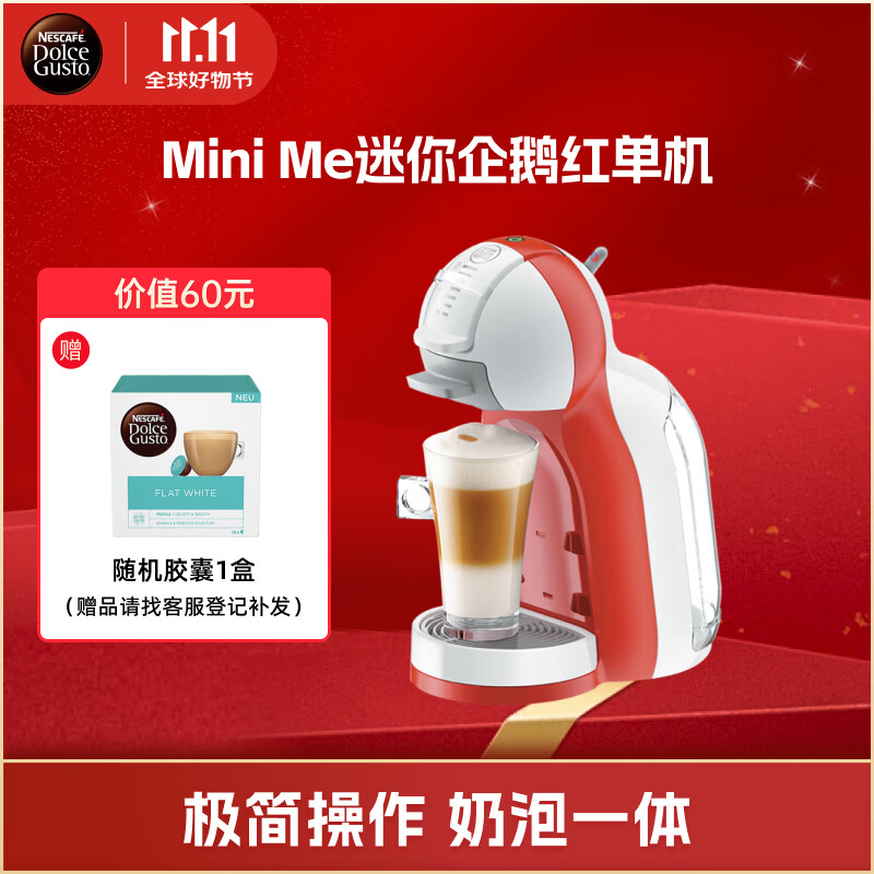 DOLCE GUSTO 雀巢多趣酷思 全自动胶囊咖啡机Mini Me迷你企鹅红单机 体积小巧易操作 急速加热