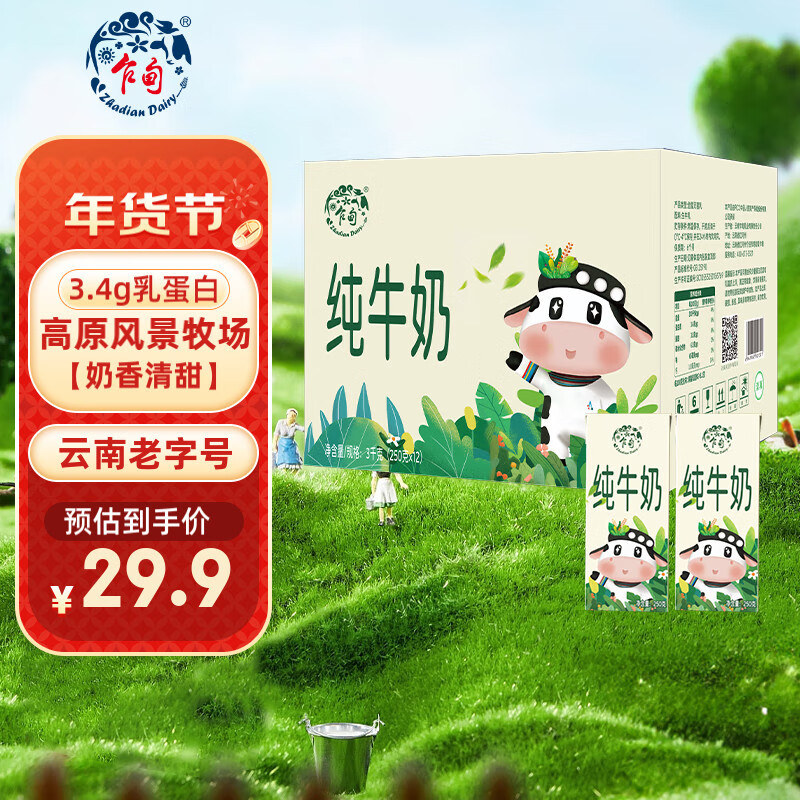 乍甸云南高原牧场纯牛奶250g*12盒整箱 全脂高原奶早餐奶学生奶儿童奶