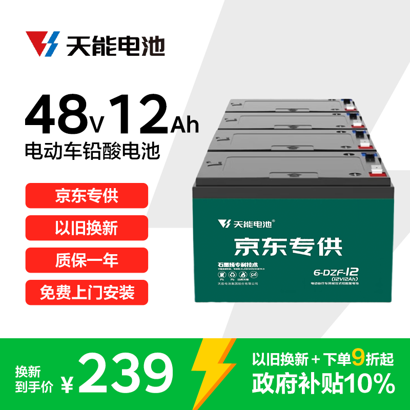 天能48V12Ah电动车铅酸电池大容量电瓶原装天能正品免费上门安装