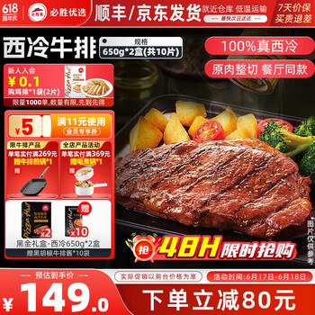 必胜客源头直发必胜优选牛排原肉整切肋眼厚切牛肉牛扒烧烤食材 西冷牛排10片(黑金礼盒650g*2)