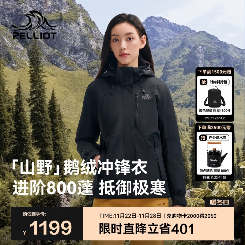 伯希和(Pelliot)[山野]户外羽绒冲锋衣女秋冬防风防水徒步外套登山服125401067黑L