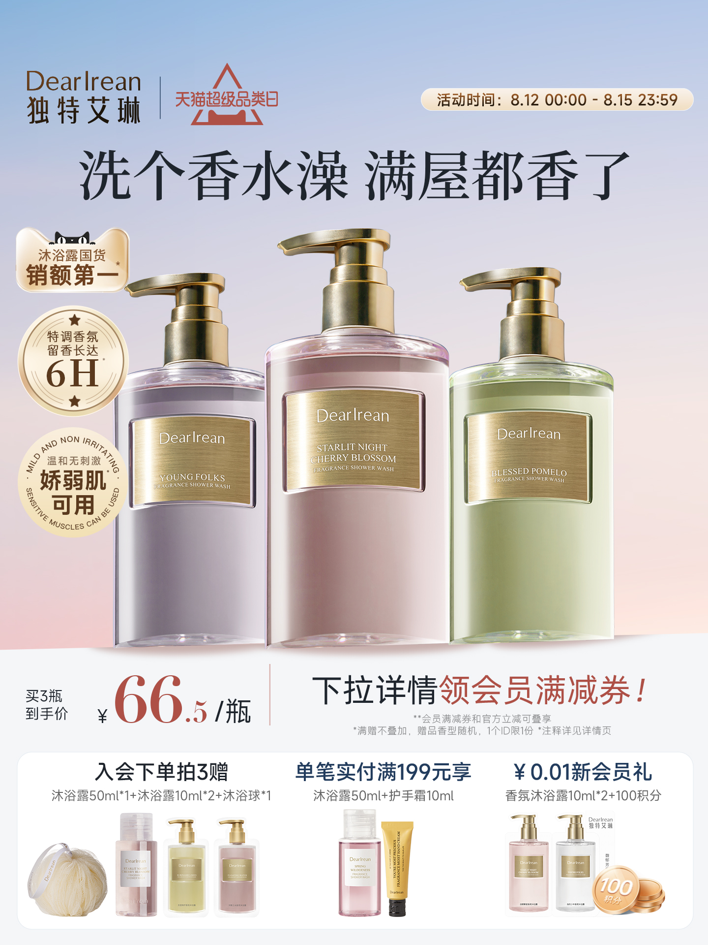【经典热销】独特艾琳香氛沐浴露全身香沐浴液清洁保湿不假滑