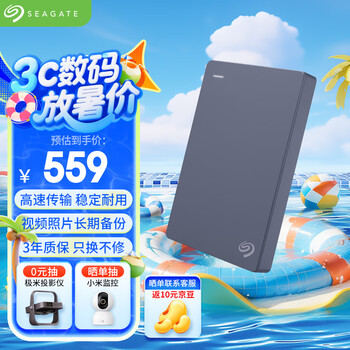 希捷(SEAGATE)移动硬盘2TB USB3.0 简系列2.5英寸 灰色 机械硬盘 便携大容量 笔记本电脑外接 外置办公 家庭存储