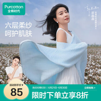 全棉时代浴巾纯棉速吸易干六层素色水洗纱布浴巾经典蓝 80cm×140cm
