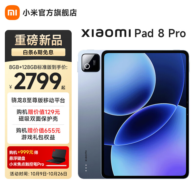 小米(MI)平板 8 Pro 11.2英寸 3.2K 超清屏 骁龙8 至尊 澎湃OS3 平板电脑 冰晶蓝 8G+128G 标准版