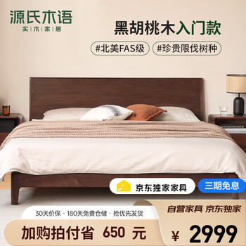 Ô´ÊÏľÓïʵľ´²¡¾ÔÂÙâ¡¿Ë«ÈË´²ºÚºúÌÒľб¿¿´ó°å´²1.8*2.0mµÍÆÌ