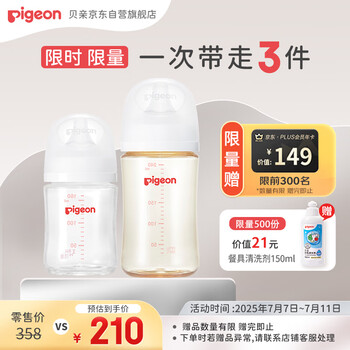 贝亲(Pigeon)玻璃奶瓶160mlS码+PPSU奶瓶240mlM码 1-6个月奶瓶套装