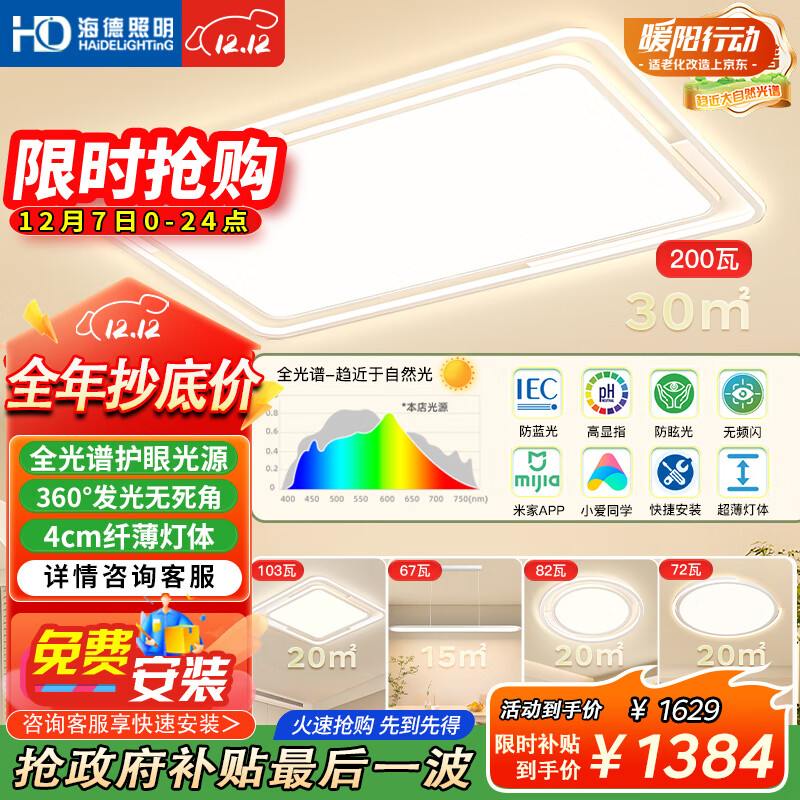 HD全光谱智能AI语音吸顶灯LED高亮客厅已接入米家app灯具【包安装】