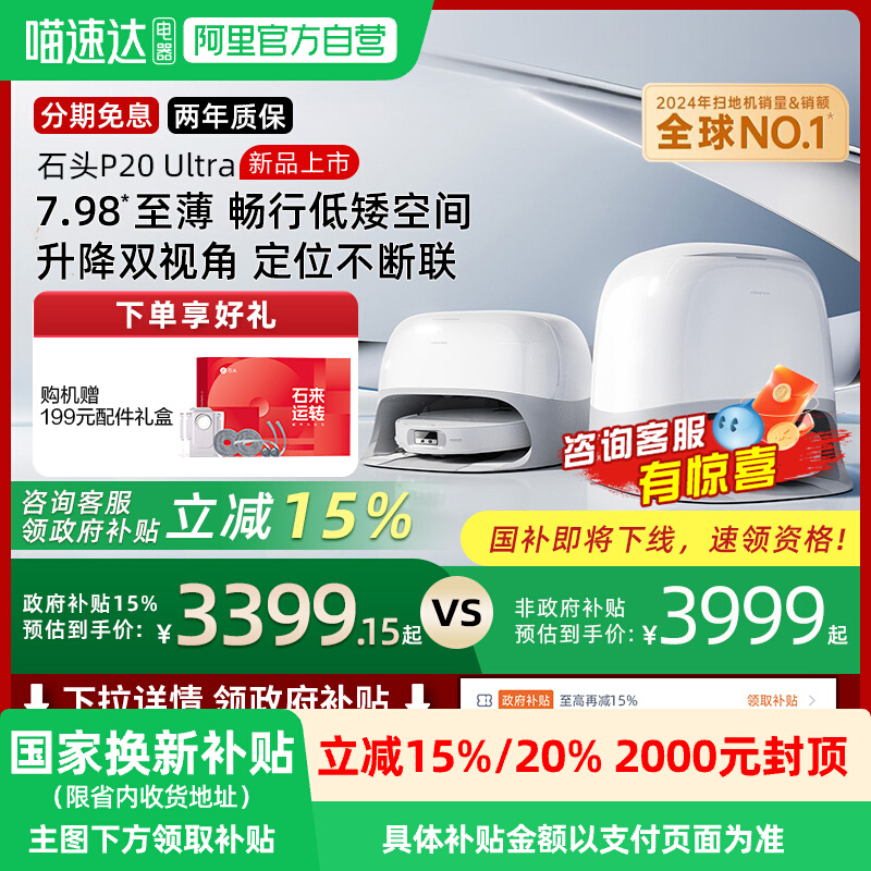【全国国补15%】石头P20 Ultra扫地机器人吸拖一体自动自清洁新品