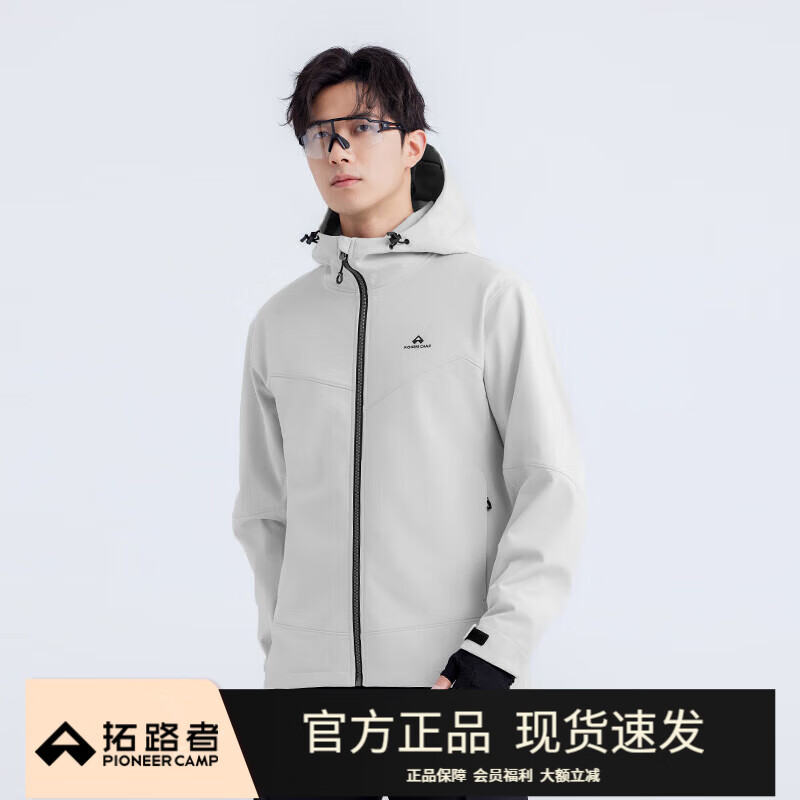 拓路者【海豹加绒】户外防风防水软壳衣男士春秋季夹克外套男连帽休闲 银灰色-无膜透气柔软 3XL