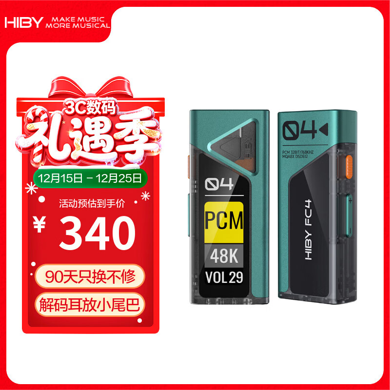 HiBy FC4屏幕版 海贝解码耳放便携安卓苹果小尾巴DSD硬解HIFI手机解码器电脑声卡 绿色