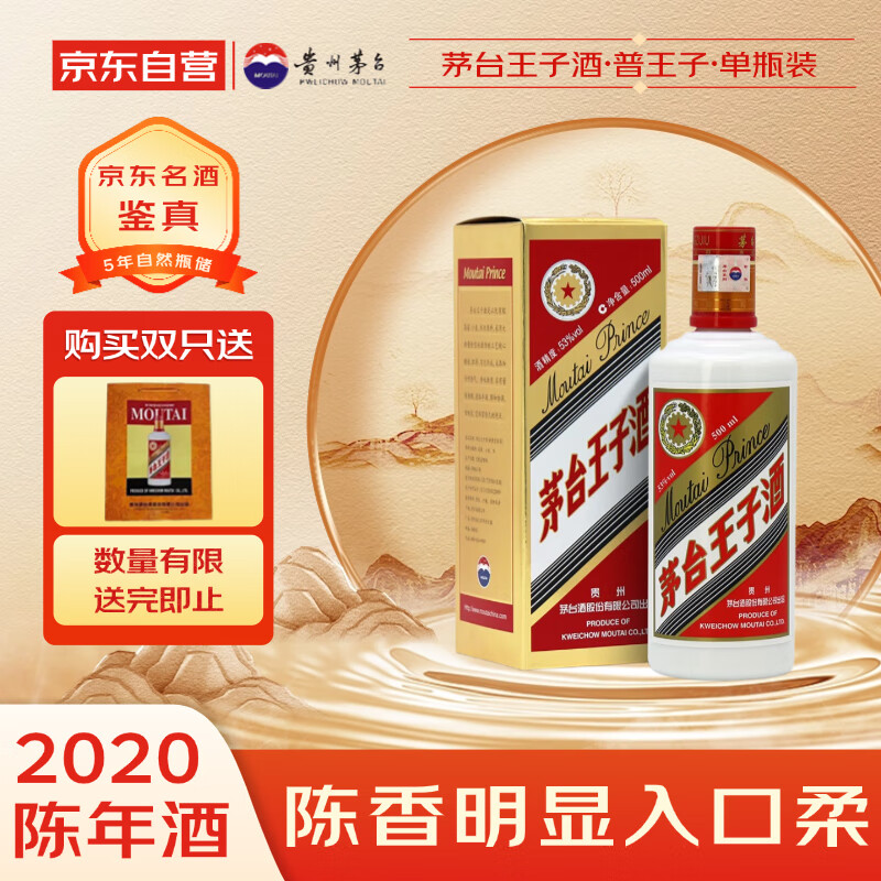 茅台 王子酒普王子 2020年 酱香型白酒 53度 500ml 单瓶装 收藏酒/陈年老酒 礼赠宴请收藏【名酒鉴真】