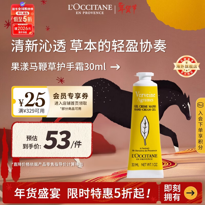 欧舒丹果漾马鞭草护手霜30ml清爽不粘腻法国进口送礼男女士礼物