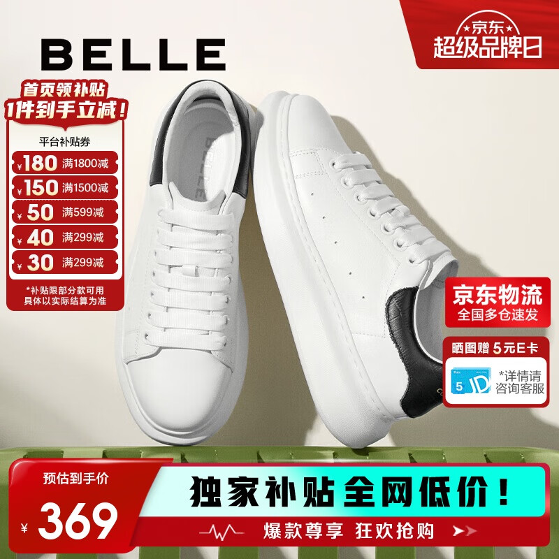 百丽撞色小白鞋男秋季牛皮舒适厚底休闲板鞋A1160CM3 黑尾翼 42