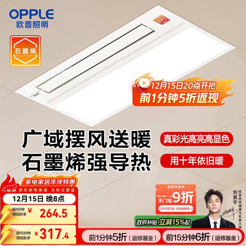 欧普(OPPLE)AI智能人感浴霸集采JC系列S5风暖抱抱暖变频适老除菌除臭一体京智