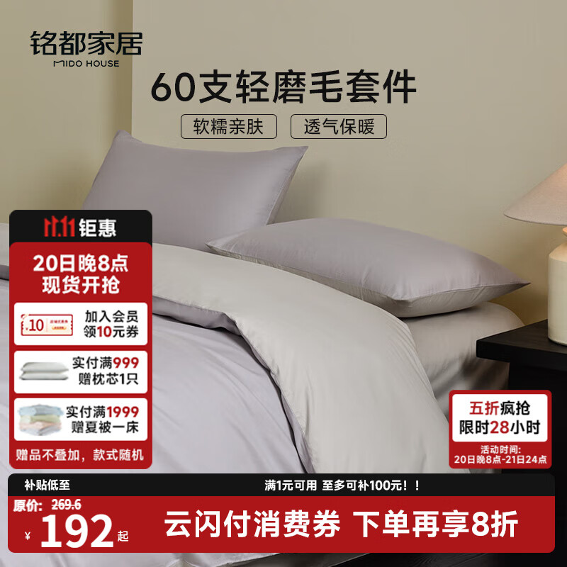 MIDO HOUSE铭都床上四件套60支纯棉四季磨毛床单被套鸢尾花1.5m床单款