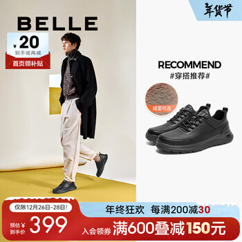 百丽男鞋轻便休闲健步鞋加绒保适爸爸鞋商务运动鞋A1715CM4【预售】 黑色-绒里 40 (250mm)