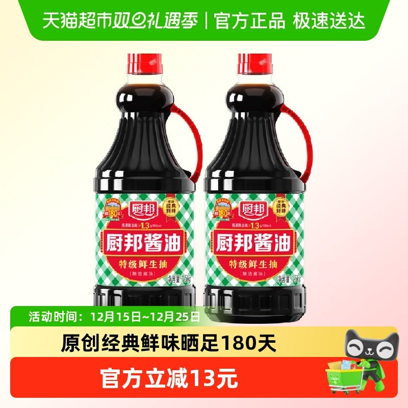 厨邦酱油1.5kg*2瓶特级生抽黄豆酿造美味鲜酱油炒菜蒸鱼调味料品