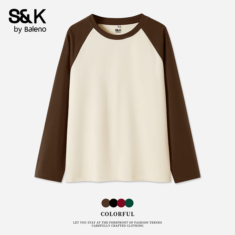 班尼路S&K系列长袖t恤女100%纯棉春秋新款时尚高级感上衣内外搭运动衣服 咖#纯色 L