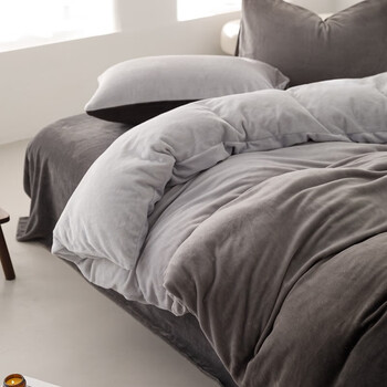AIDLIA类加厚双面牛奶绒四件套冬天保暖法兰绒床单被套被罩床上用品 暮雪 200*230cm四件套(1.5/1.8m床)