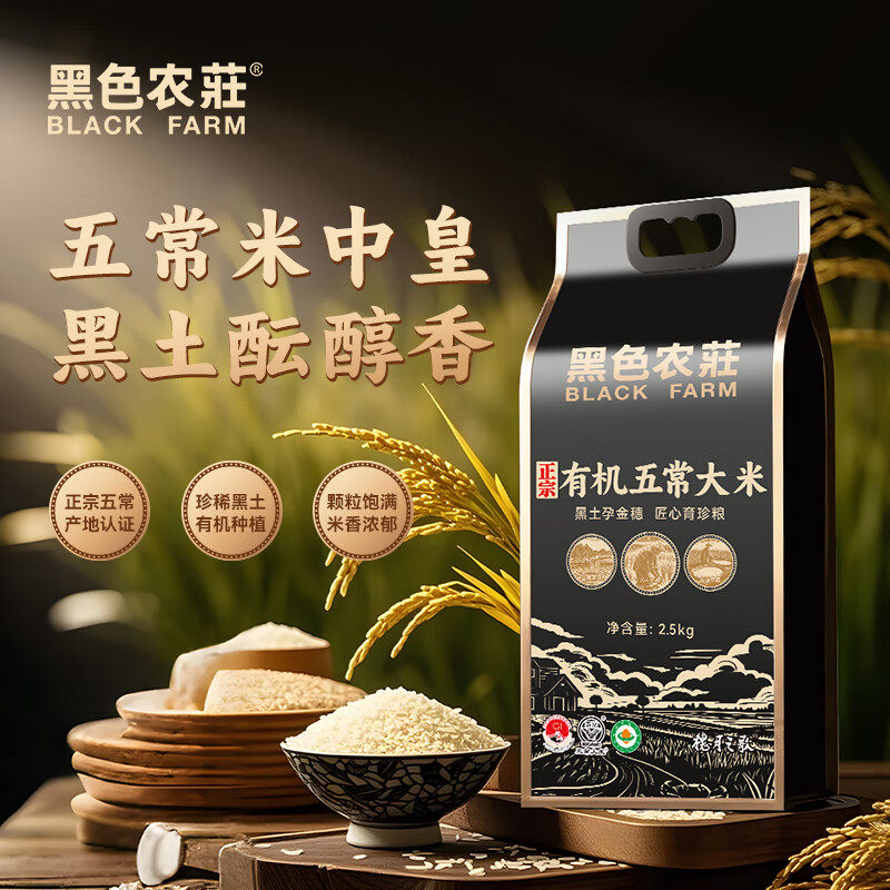 黑色农庄正宗有机五常大米5斤装 2.5kg香米稻花香米饭新米稻花香2号有机米 【十斤装】2.5kg*2袋
