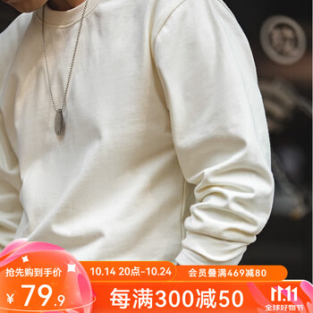 旗舰店马登(Maden)美式300G重磅长袖T恤男纯棉卫衣打底衫 米白色 XL