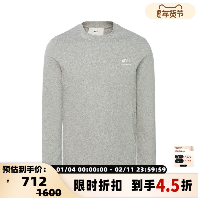 旗舰店AMI PARIS 春季棉质字母印花男女款休闲圆领长袖T恤上衣