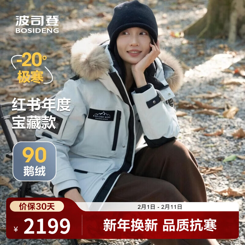 旗舰店波司登(BOSIDENG)极寒90鹅绒羽绒服短款冬季男女款一手长大毛领保暖加厚外套 冰川绿4631 S 160/84A
