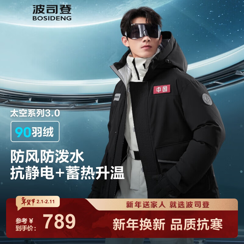 旗舰店波司登(BOSIDENG)羽绒服太空联名新国标90绒男女情侣短款3.0科技保暖外套 神秘黑8A19 XS 155/80A