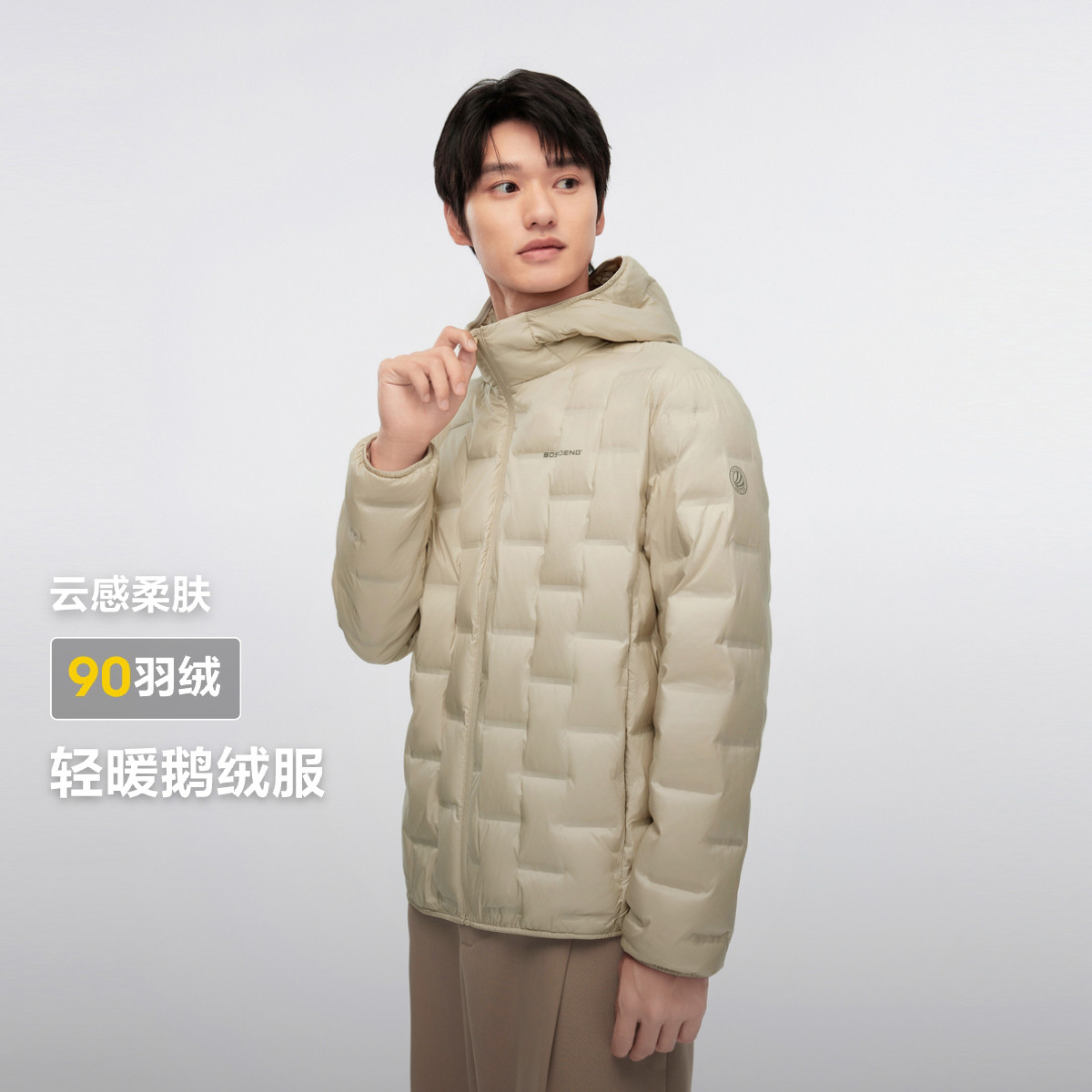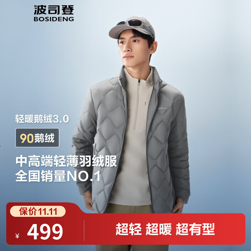 旗舰店波司登(BOSIDENG)25新款90鹅绒轻薄羽绒服男短款菱格纹立领轻盈保暖外套 远山灰8C88-格雷系 L 180/100A 体重约140-155斤