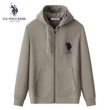 旗舰店U.S. POLO ASSN.US保罗卫衣情侣款休闲开衫秋季新款加绒保暖连帽开衫卫衣男女同款 卡其 M