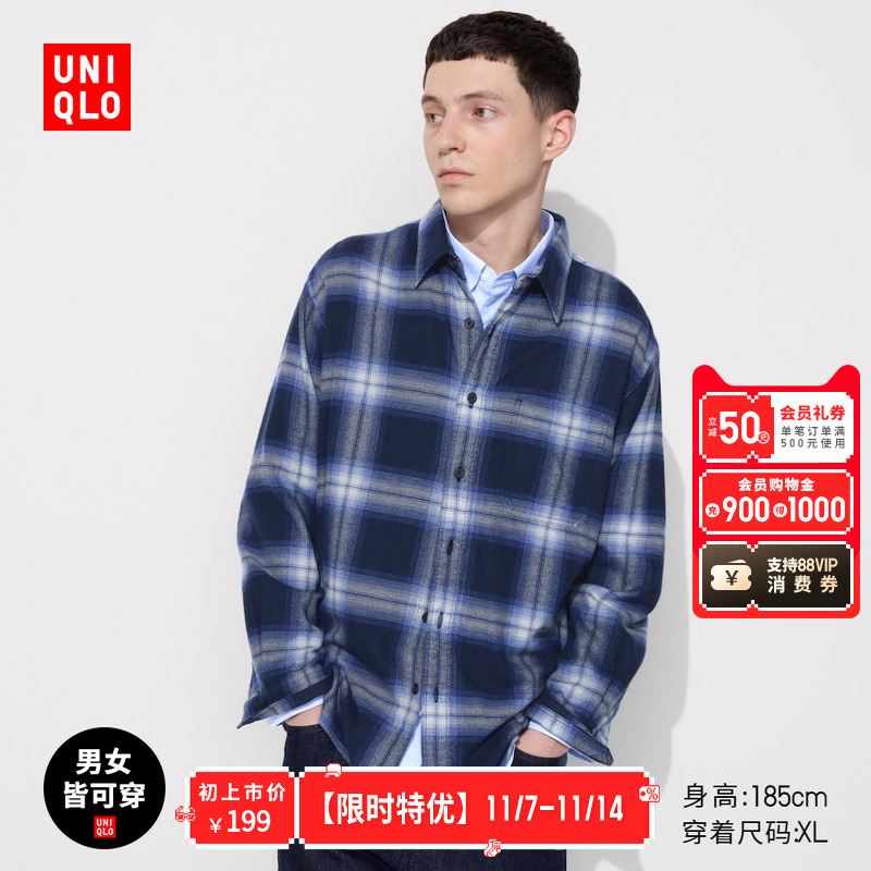 旗舰店优衣库男女装法兰绒格子衬衫/长袖衬衣休闲百搭470188