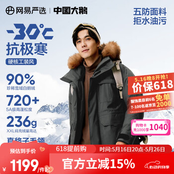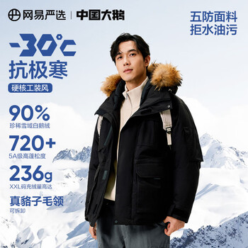 旗舰店网易严选【中国大鹅】90白鹅绒工装羽绒服加厚保暖抗极寒-30℃地表强温冬 松烟墨-机能工装(多口袋) 90巨朵鹅绒 M(170/92A)