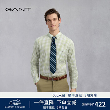 旗舰店GANT/甘特【亚洲版型】男士纯棉通勤衬衣绿格纹复古休闲长袖衬衫 345-乳白抹茶色 L