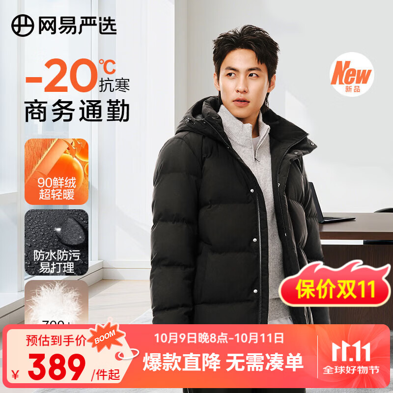 旗舰店网易严选25新品90鲜绒轻暖面包服羽绒服男通勤商务-20℃抗寒无氟防水防污 A款25秋冬-连帽-石墨黑 L (175/96A)